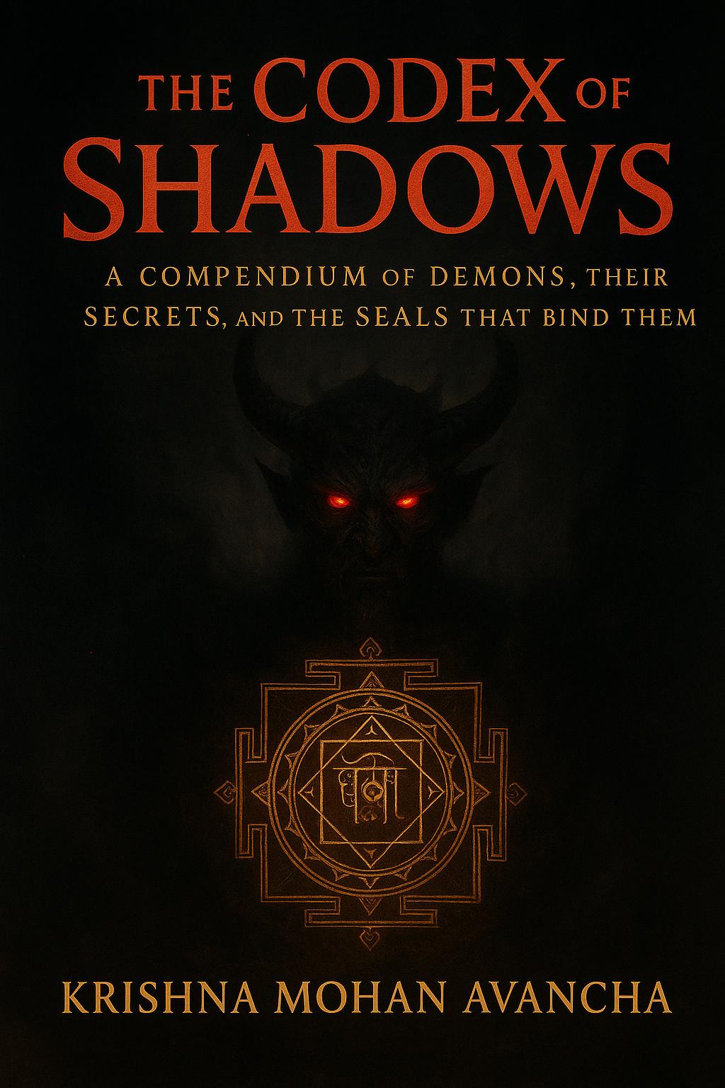 The Codex of Shadows: A Compendium of Demons, Their Secrets, and the Seals That Bind Them By Krishna Mohan Avancha Enter the forbidden realm where occult knowledge, demonology, and exorcism rituals converge. The Codex of Shadows is a powerful exploration of the paranormal—an unflinching guide to demons, their origins, and the protective seals that have bound them across cultures and centuries. Drawing on real possession case studies, sacred mantras, protective yantras, and modern psychology, bestselling author Krishna Mohan Avancha (known for BHOOT: FACTS ND REALITIES and Whispers in the WiFi) reveals why shadows are more than myth—and how they shape our fears in both spiritual and digital spaces. Inside this occult compendium you will discover: Demon archetypes across religions and mythologies. Exorcism rituals—from ancient mantras to modern therapy. How technology, AI, and VR could open new paranormal portals. Self-protection practices and seals of binding. For seekers, skeptics, and thrill-seekers alike, The Codex of Shadows is part survival manual, part occult grimoire, and part mirror into your own hidden darkness. ⚠️ Read with caution. These pages are not just about demons—they may awaken your shadow within.